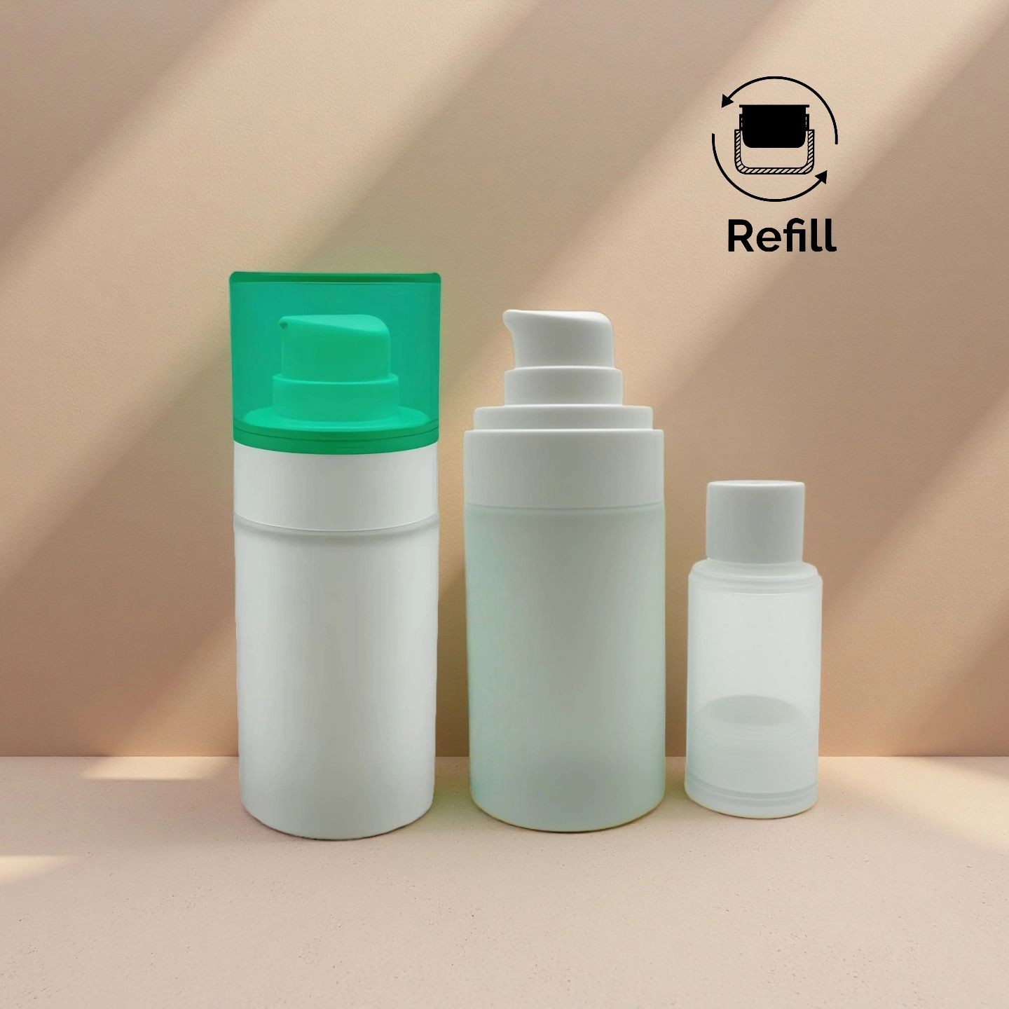 Keespack Refillable Glass Airless Tech Model Volume(ml) Material ZP002-1084-15 15ml Glass Assemble L*W*H (mm) Output(ml) Screw on 43.7*43.7*111.8 0.23ml More Sizes Model Volume(ml) L*W*H (mm) ZP002-1084-30 30ml 43.7*43.7*140 ZP002-1084-50 50ml 43.7*43.7*178